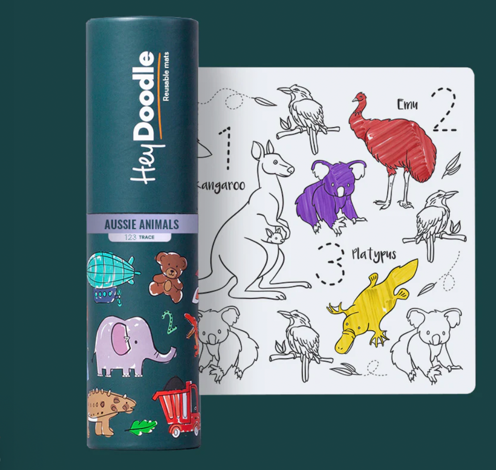 Each mat is thoughtfully designed and features an educational theme (ie letters, farm animals, numbers) so your curious kids can learn as they colour!