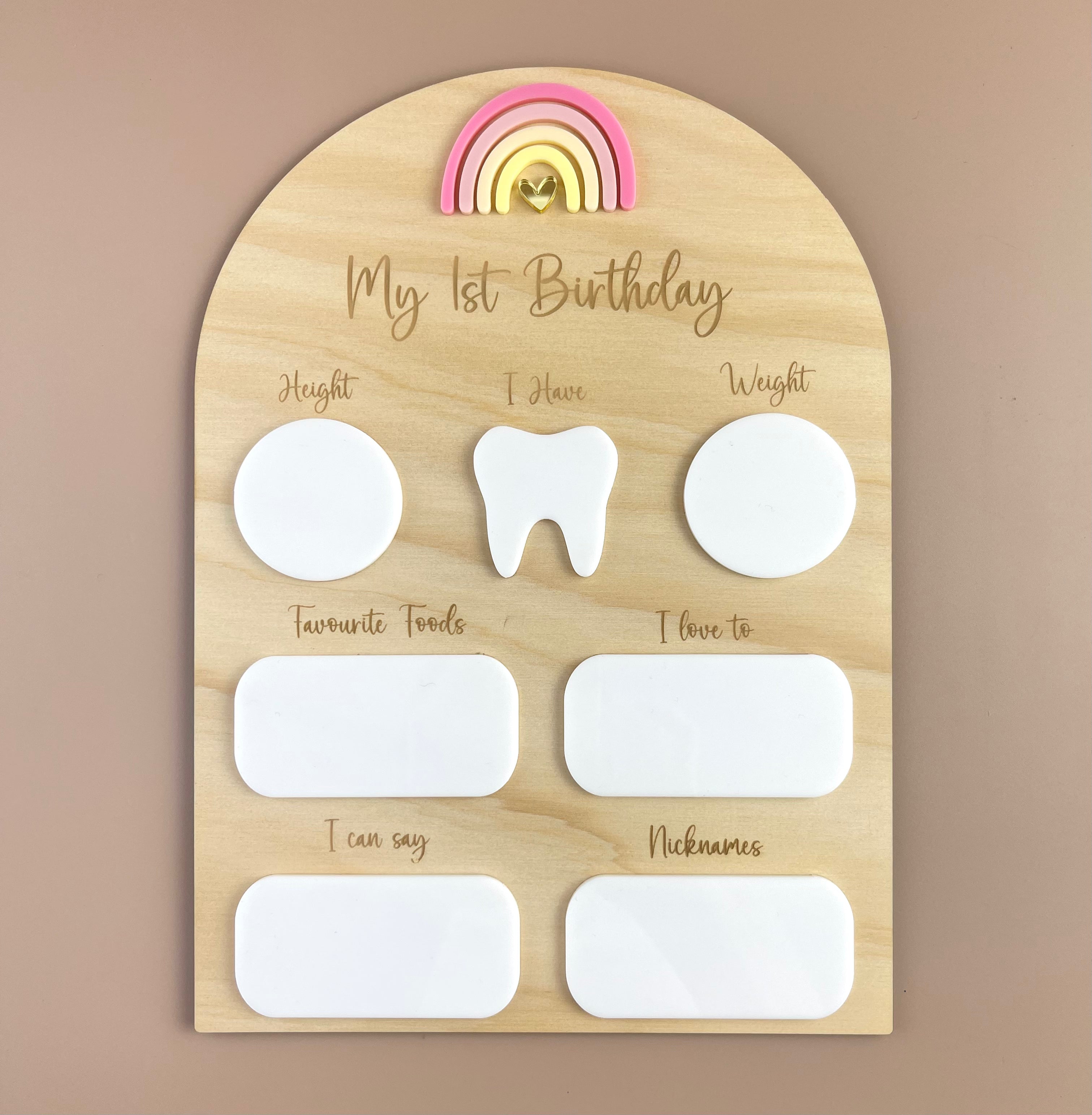 My 1st Birthday Board - Pink Rainbow - Luma Light