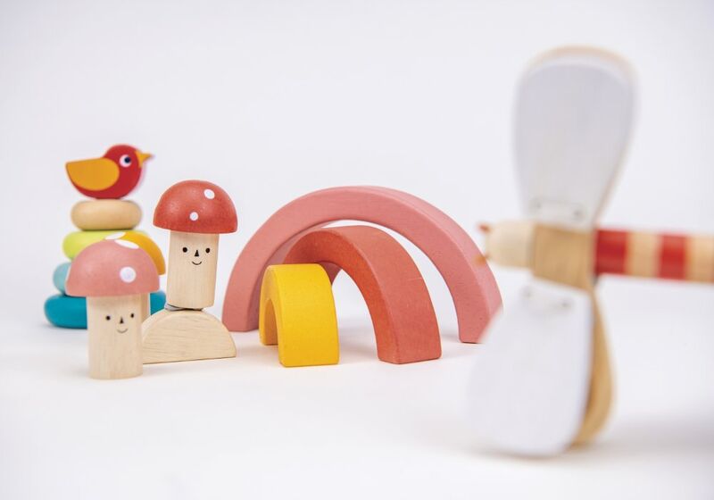 Discover a complete play experience in one handy box, perfectly designed for your 18 to 24-month-old! This garden playtime box includes four engaging early-learning toys, making it a wonderful gift. It features a five-part stacking tree with a bird that encourages placing the rings in order to stack. The four-part stacking rainbow tunnel can be arranged in various ways, promoting open-ended play. The three-part toadstool hammer game introduces the concept of cause and effect, while the dragonfly clacker adds an element of sound and sensory play. This set focuses on fine motor skills, sensory exploration, stacking and ordering, and understanding cause and effect.