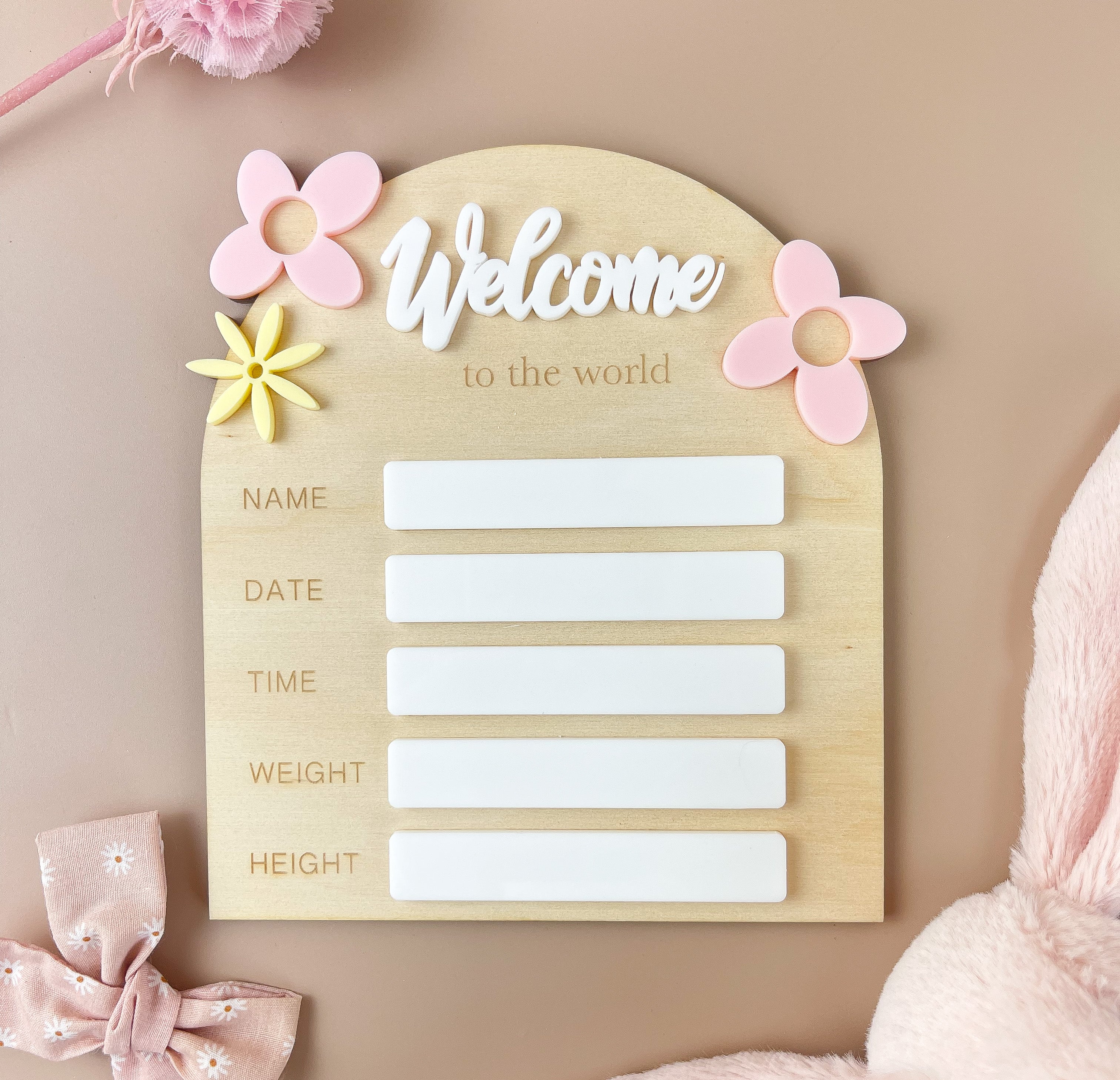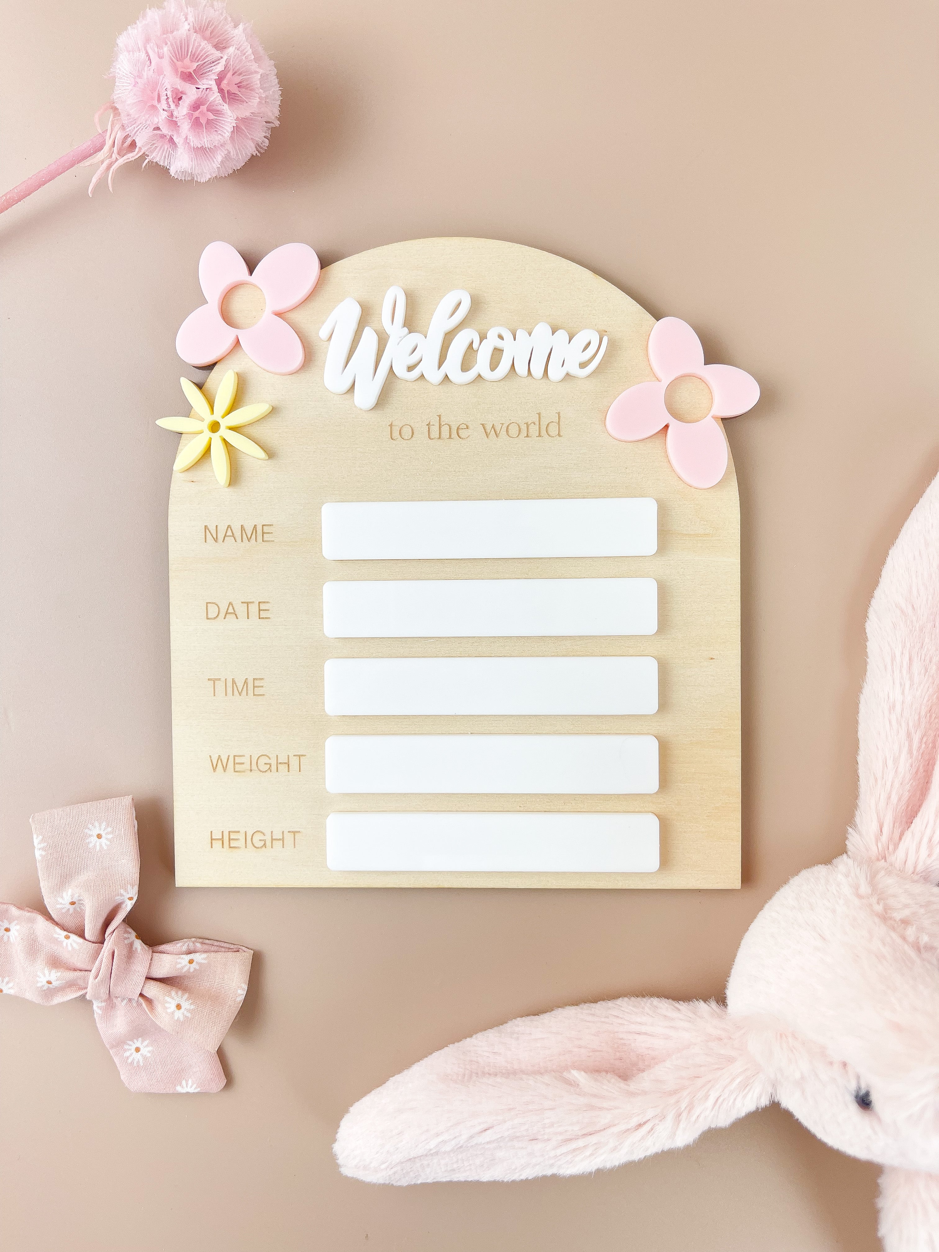 Birth Plaque - Welcome to the World - Floral Acrylic - Luma Light