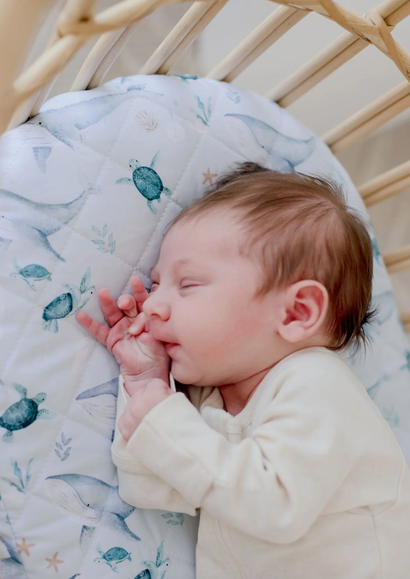 • Small Oval/Moses/Snoo Fitted Waterproof Sheet | Turtle Bay - Bambella Designs
