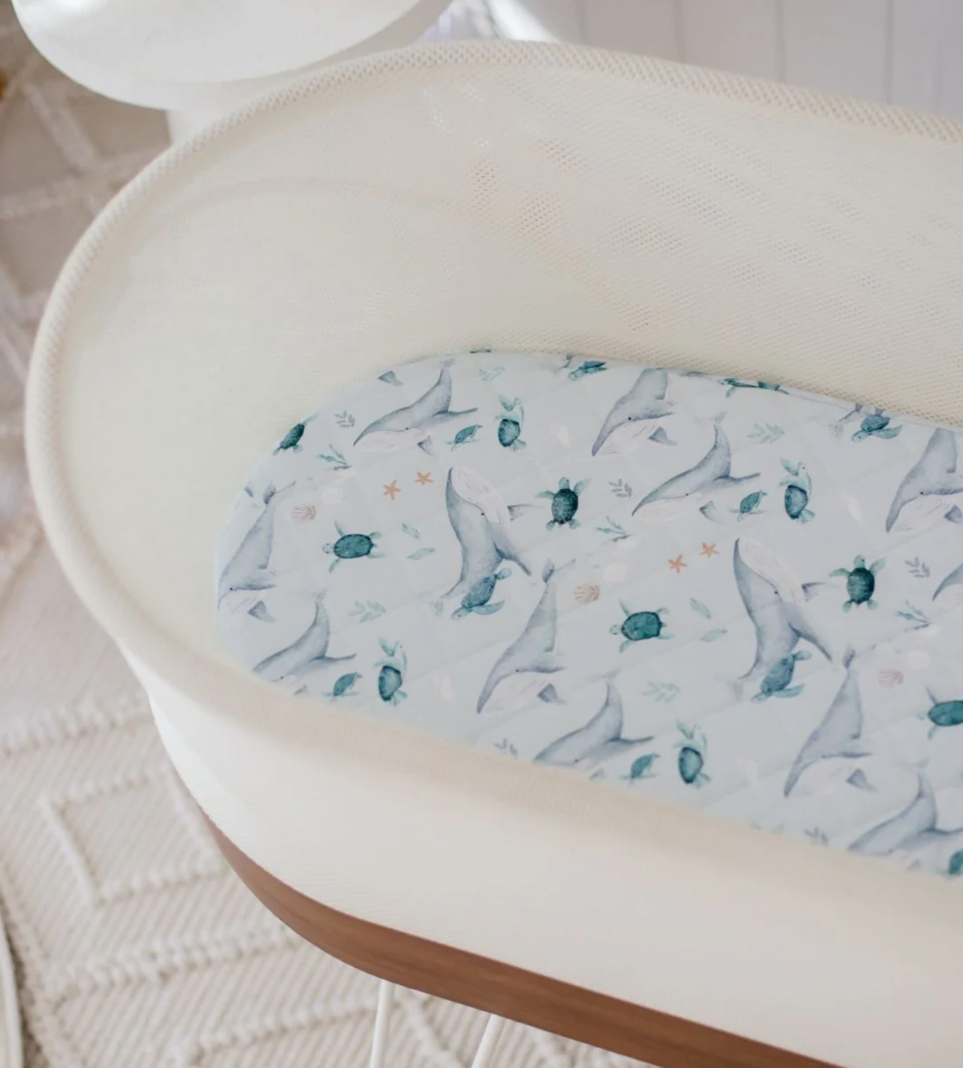 Small Oval/Moses/Snoo Fitted Waterproof Sheet | Turtle Bay - Bambella Designs