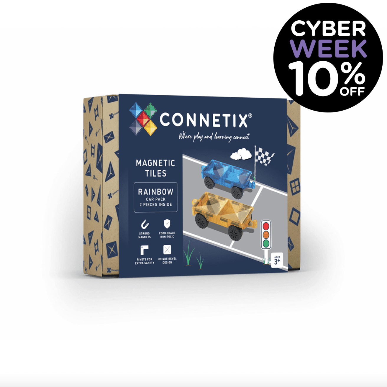 As an open-ended quality toy, Connetix will grow WITH your child as they learn and their play becomes more complex. Support your collection and complement your 2 piece Car Base Expansion Pack with our 100 piece Creative Pack or 62 piece Starter Pack to collect standard tiles of various shapes and create limitless vehicle creations.