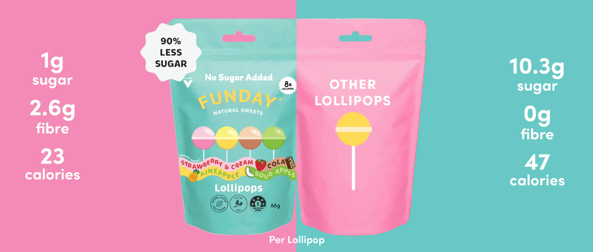 FUNDAY found the sweet spot. Deliciously natural lollies packed with gut-loving goodies, no sugar added & no sugar alcohols.