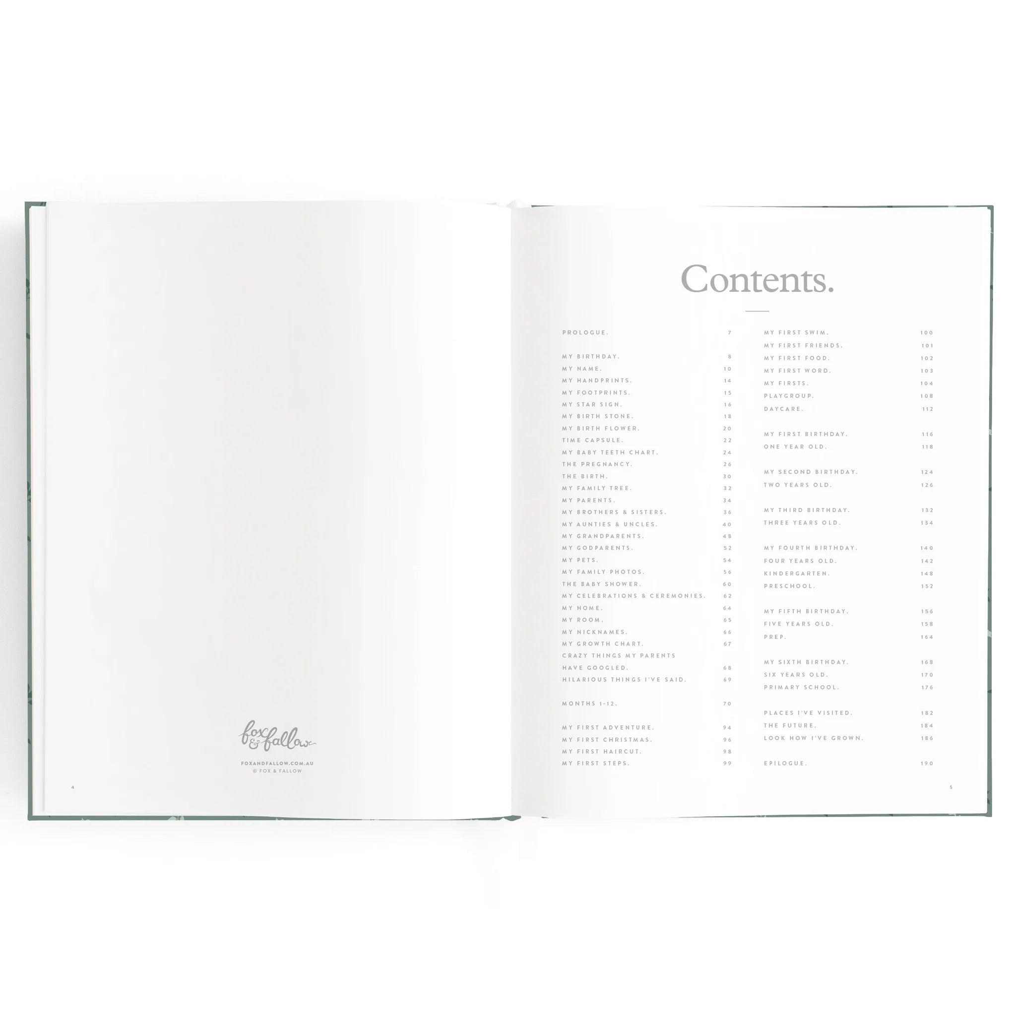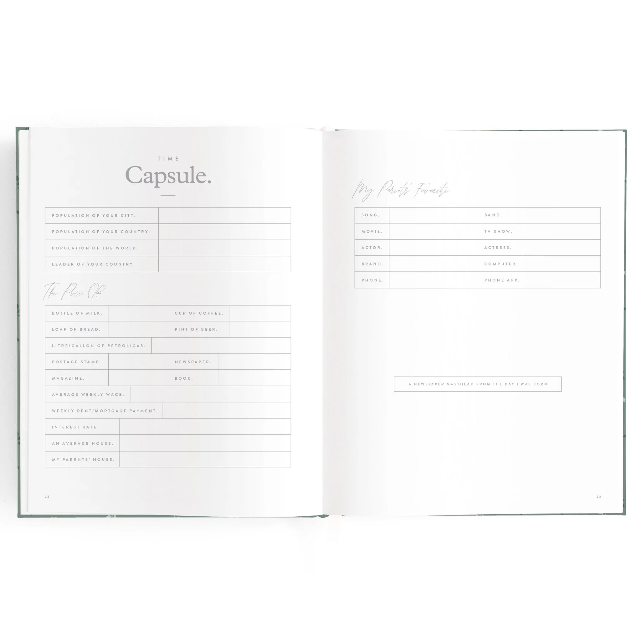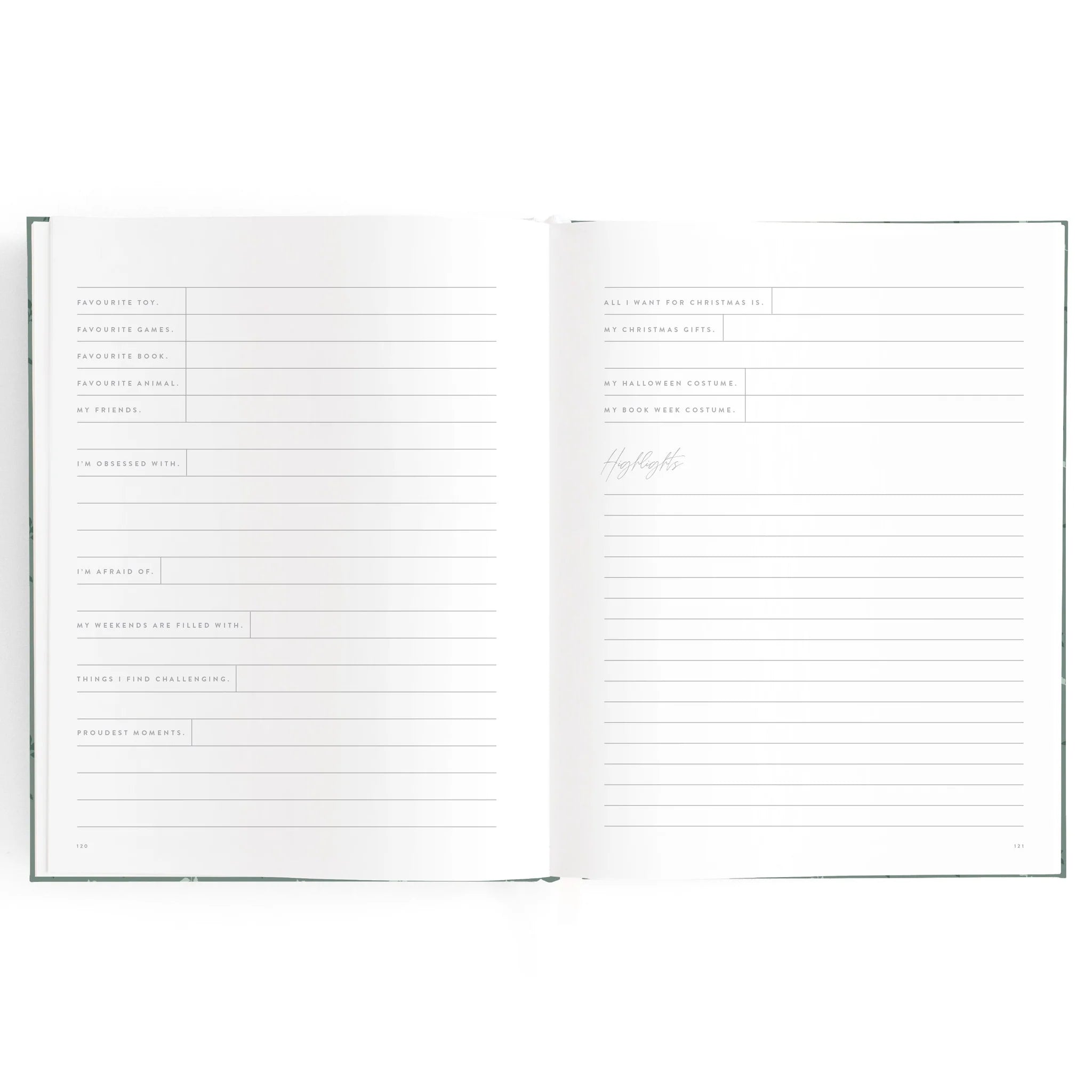 A beautiful keepsake for the whole family to enjoy. Includes: important milestones and firsts, family profiles, family tree and travel map, playgroup and daycare through to kindy and school years, time capsule, nicknames and celebrations, pets, friends, birthdays and more. 190 pages.