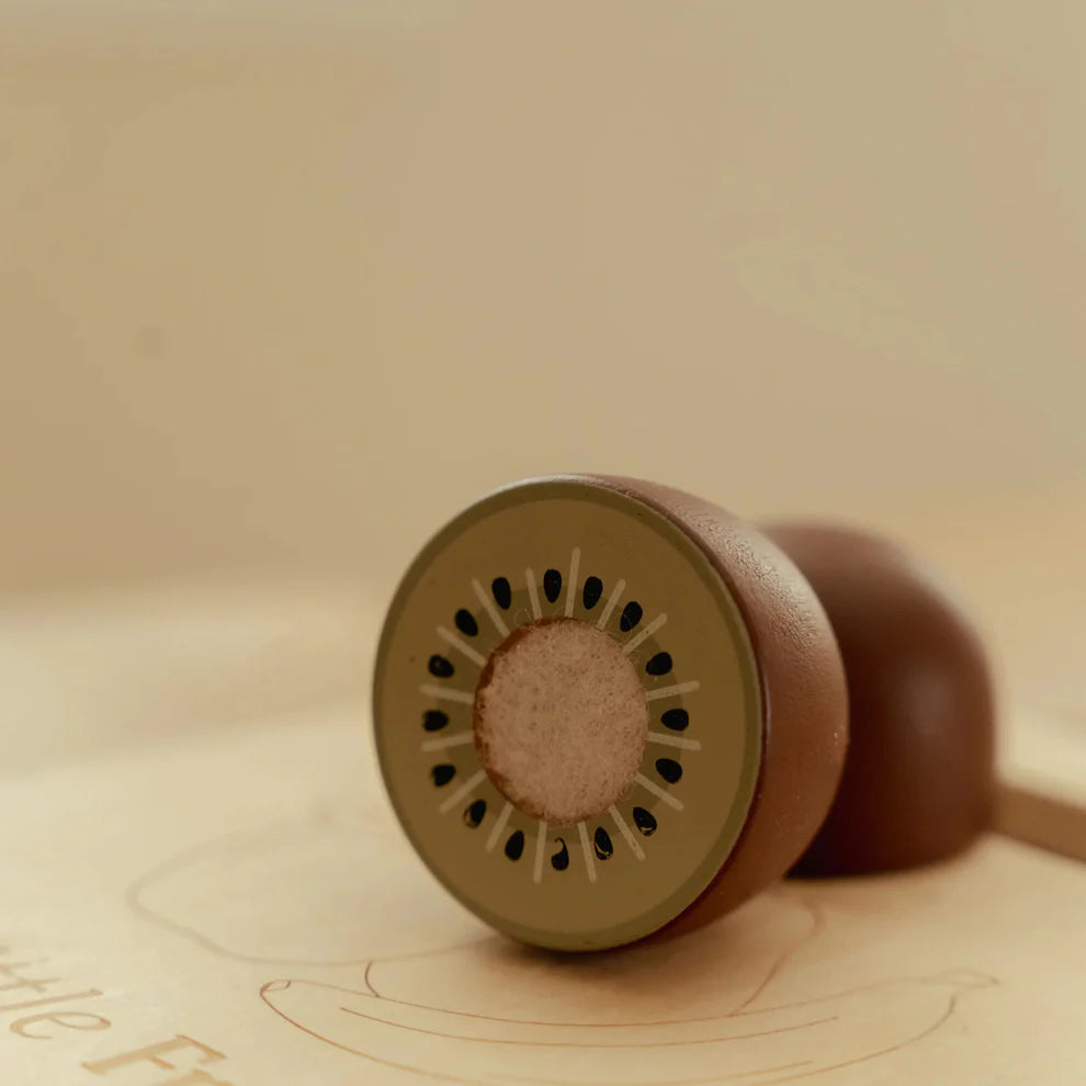 Prepare a fruity treat! This cheerful wooden cutting fruit set includes six different types: an apple, pear, banana, kiwi, orange, and a slice of watermelon. Each piece of fruit can be cut in half with the wooden knife and easily reattached with Velcro. Perfect for little chefs who love to play and practice cutting!