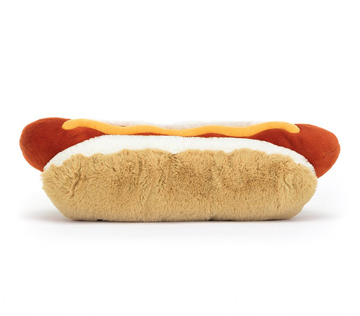 For summer fun, meet this silly sausage! Amuseable Hot Dog loves a trip to the fairground, trotting along on cordy feet. With a fluffy bread bun in beige and white fur and a gingery frankfurter covered in mustard, our smiley snack can't wait to try all the rides!