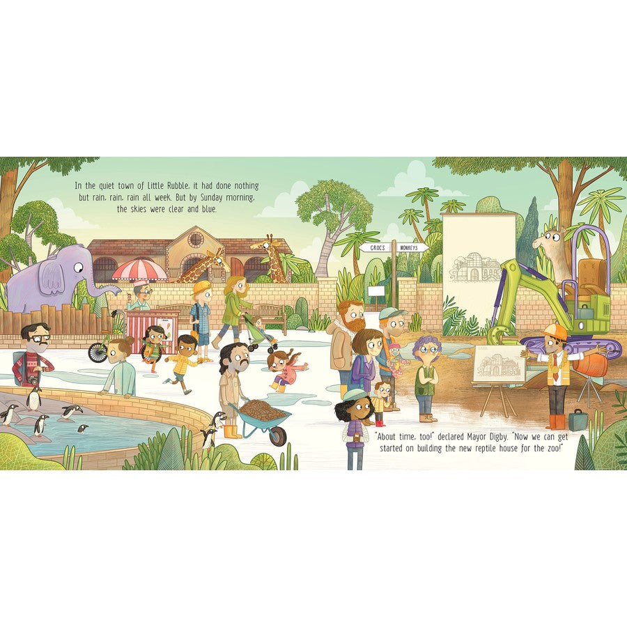 It's an exciting day at the Little Rubble zoo, as work is beginning on a new reptile enclosure! The only problem is that it has rained all week and Mayor Digby's digger soon becomes completely stuck in the squishy mud!