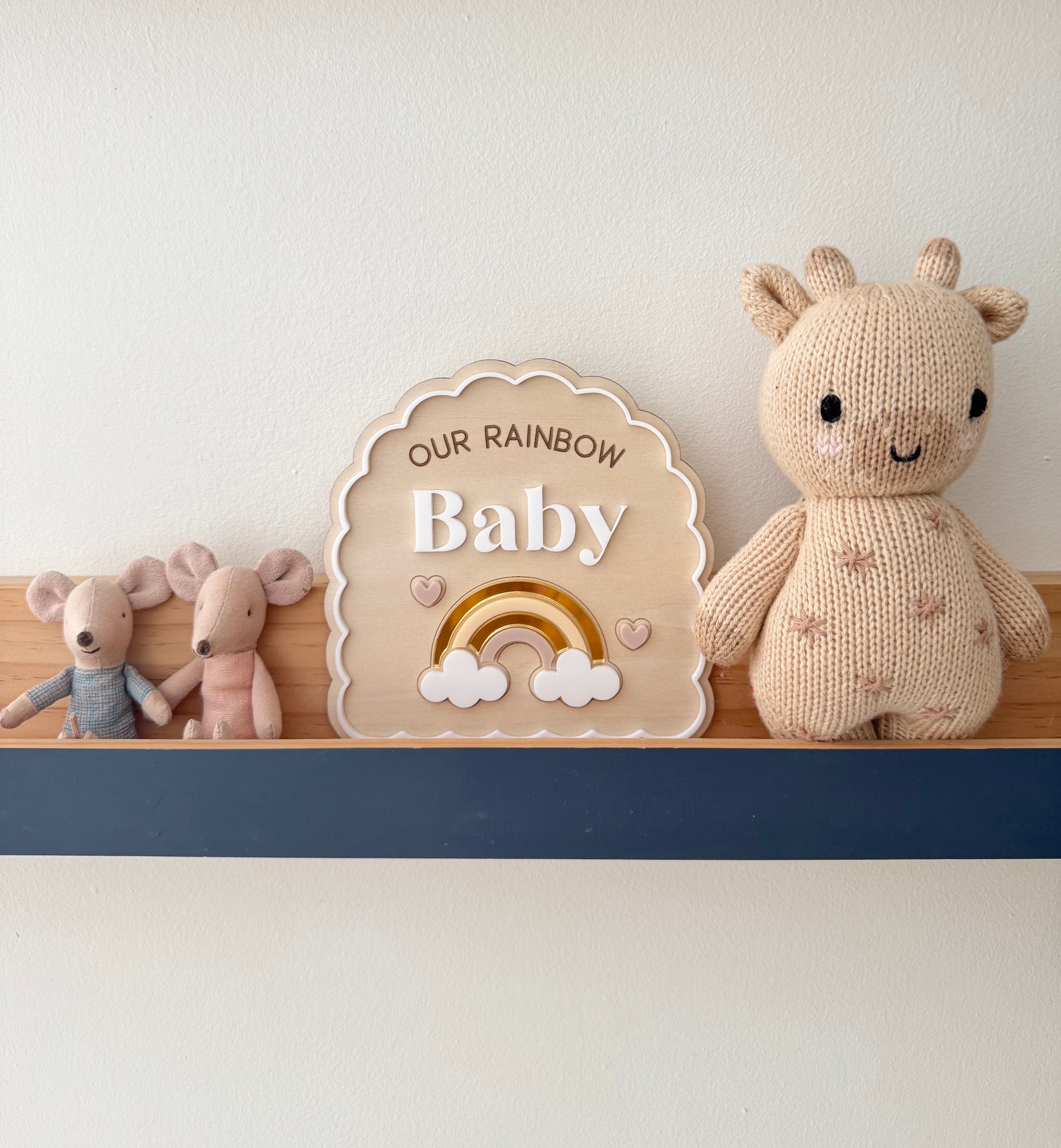 Use this Our Rainbow Baby plaque to announce your pregnancy to the world and/or announce your new babies arrival to the world, then display as a gorgeous keepsake piece in the nursery afterwards.