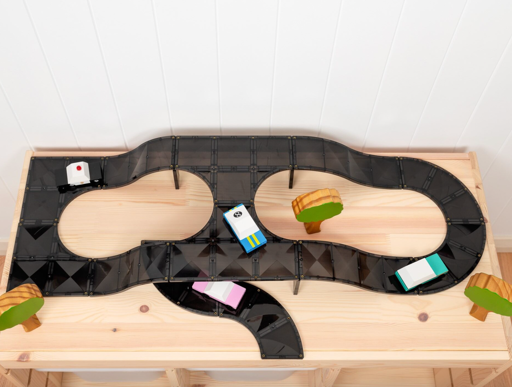 Introducing new tile shapes in sleek black, this pack inspires children build roads, ramps and raceways while harnessing the values of open-ended play, making them perfect for exploring construction in a whole new way!