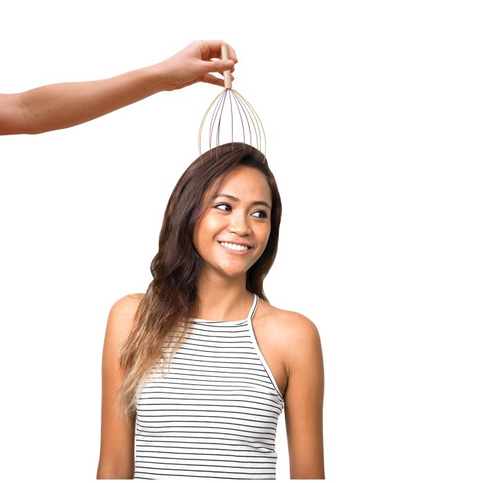 Stimulate nerve endings and acupressure points on your scalp, temples and neck and de-stress!