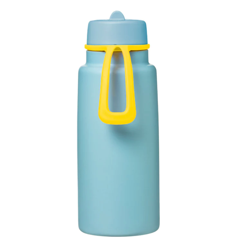 Flexible and durable carry handle makes on-the-go hydration a breeze. Large opening for easy fills (and refills) with liquids and ice cubes. 1L capacity. Easy to clean design, dishwasher safe, top rack only. BPA, Phthalates and PVC free.