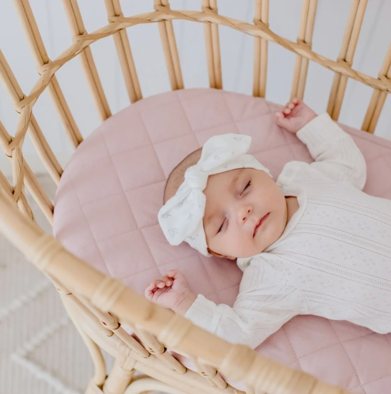 Small Oval/Moses/Snoo Fitted Waterproof Sheet | Lullaby Pink - Bambella Designs