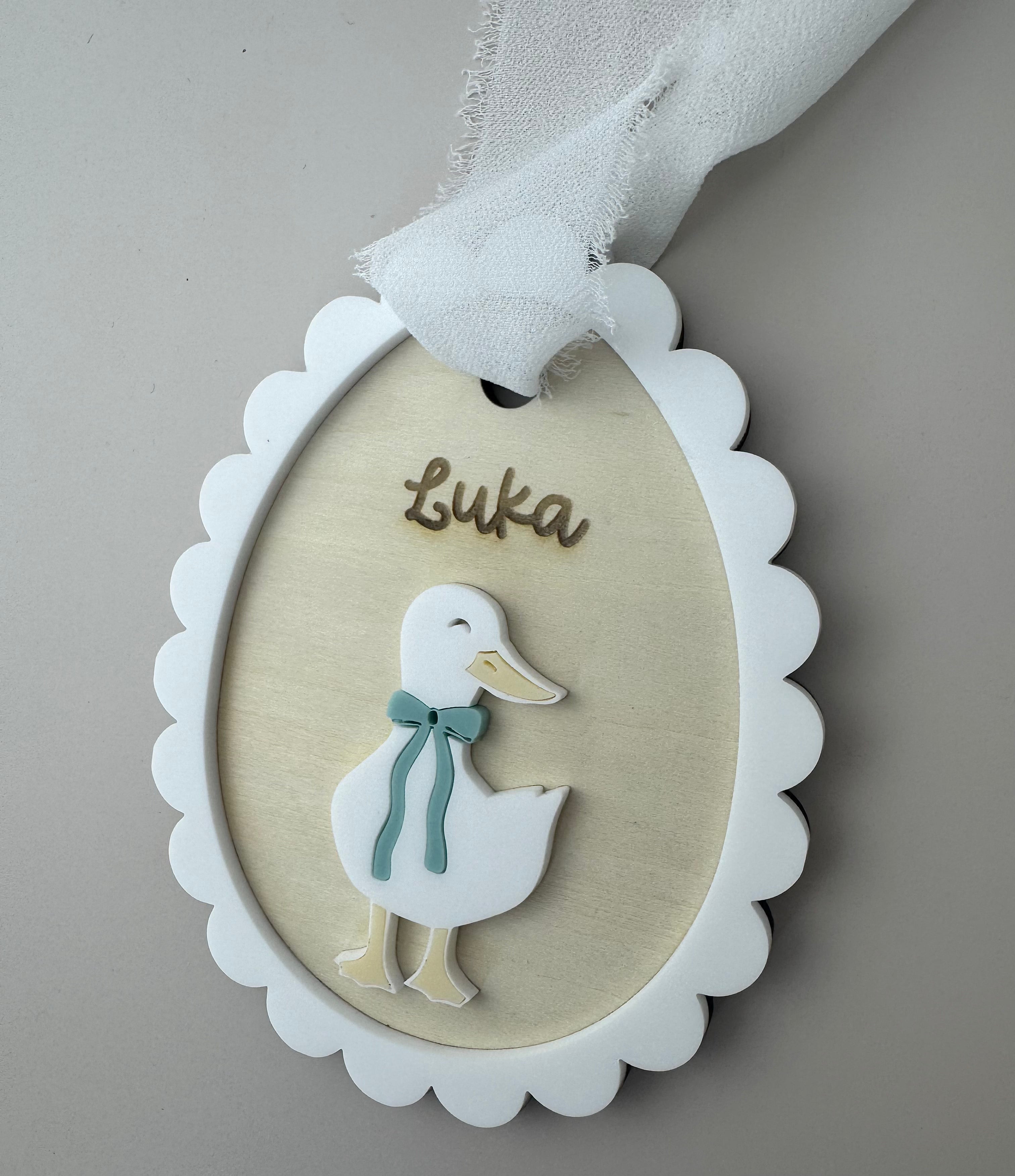Custom made hanging tag with your little ones name - please include this in the notes when you checkout.