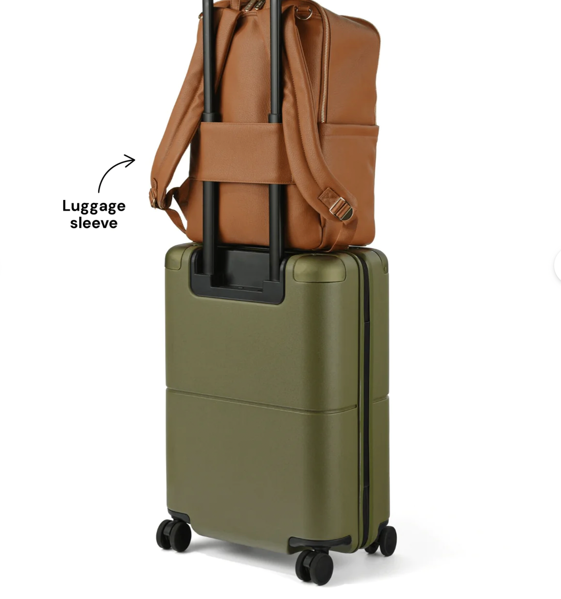 It is the largest nappy bag in our collection and it has two main compartments for easy organisation. With its large capacity and luggage strap, it is also perfect for travelling.