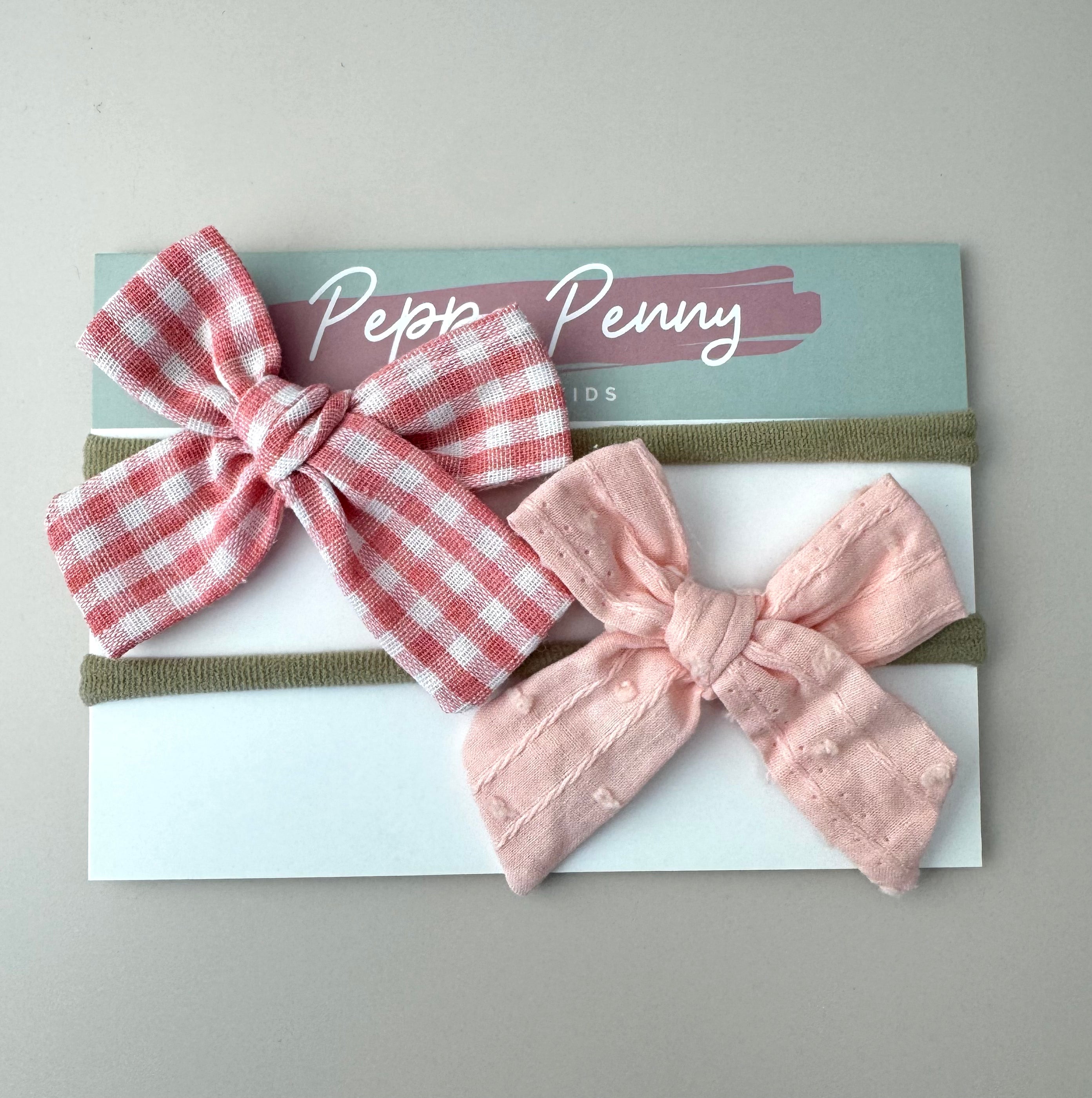 Featuring a large light pink bow + a large gingham pink bow