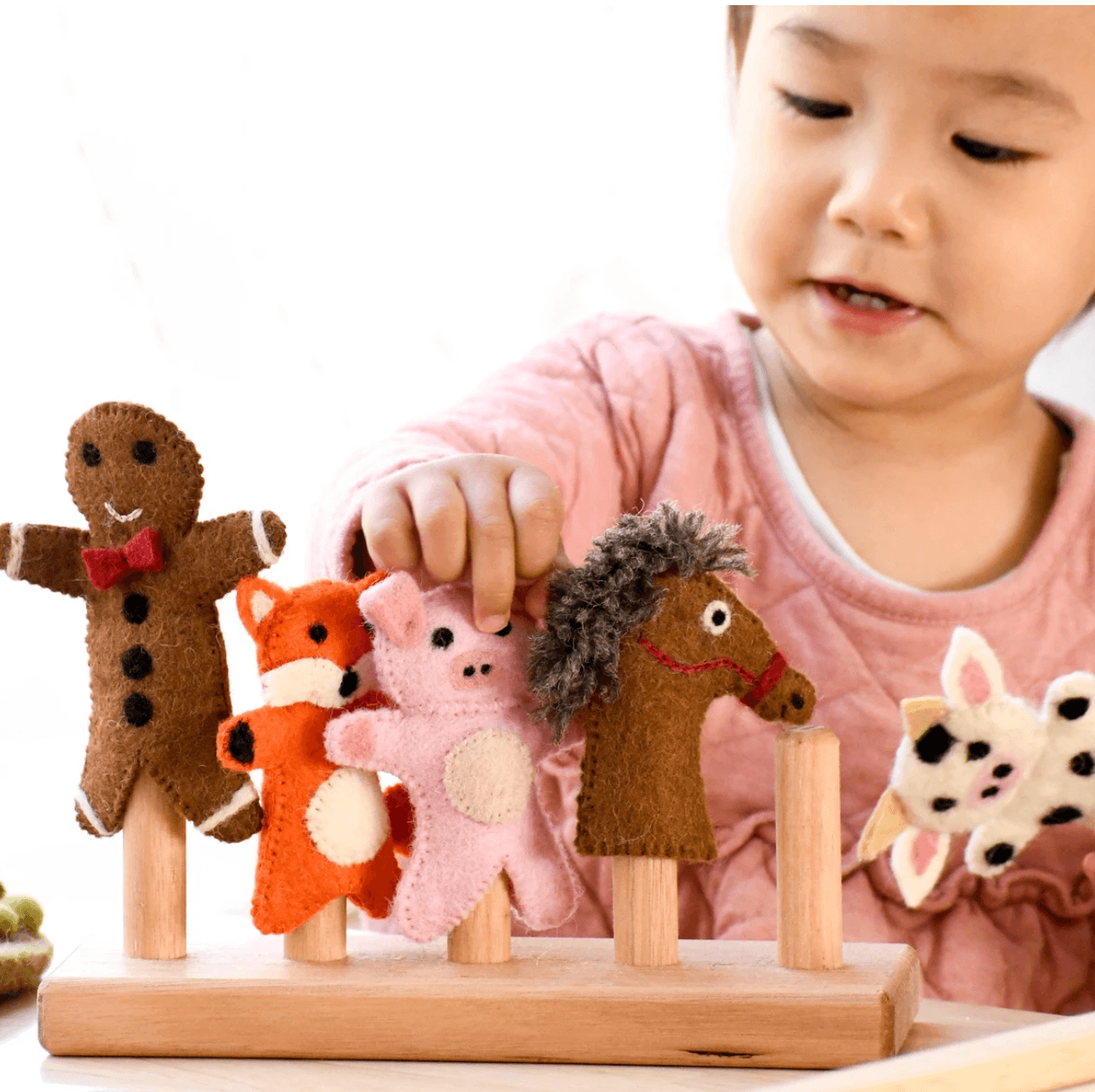 Explore our range of finger, hand and stage puppets; these cuddly creatures and puppets are sure to win over your child’s heart.