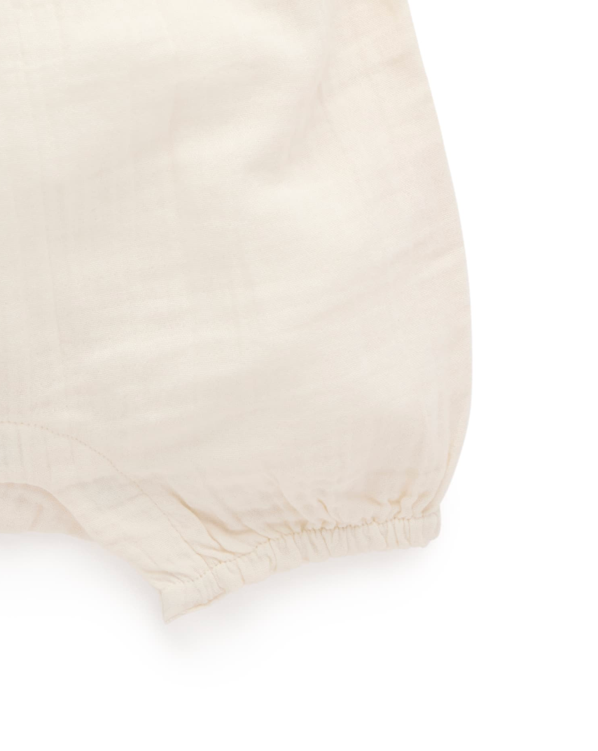 Designed as a balloon style, with gathers around the legs for a comfortable fit. Made from the softest 100% Organic Cotton muslin for a lightweight style.