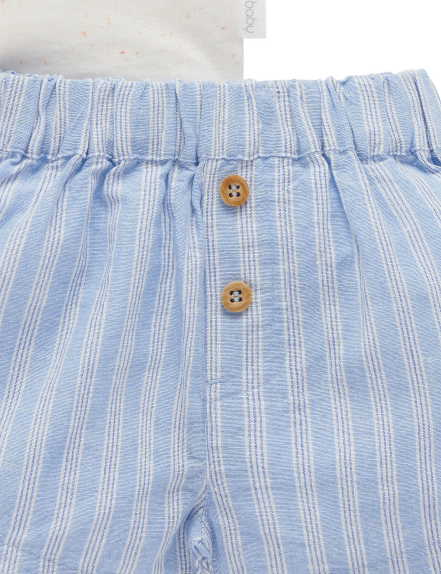 Keep your little one comfortable and cool in our Ice Cream Cart Set! Featuring a soft jersey tee with a fun, ice cream cart applique at the chest, and breathable shorts made from a cotton linen blend in a classic stripe. Pair with our matching Laguna Legionnaires Hat for a sweet summer outfit.