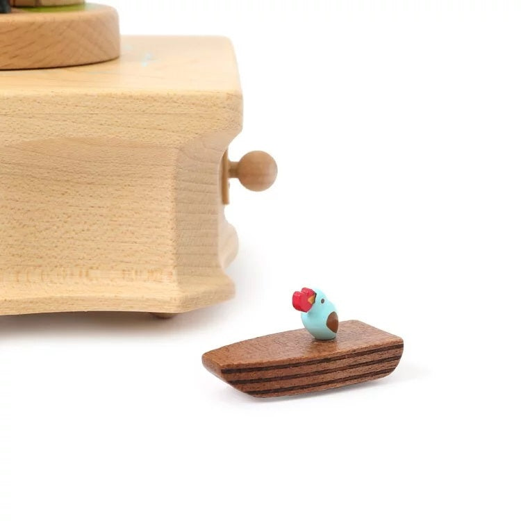 Combining traditional techniques with modern technology, this music box does not need batteries. To see the boat move, turn the winder under the music box. A knob at the side lets you stop and restart the music any time for added control.