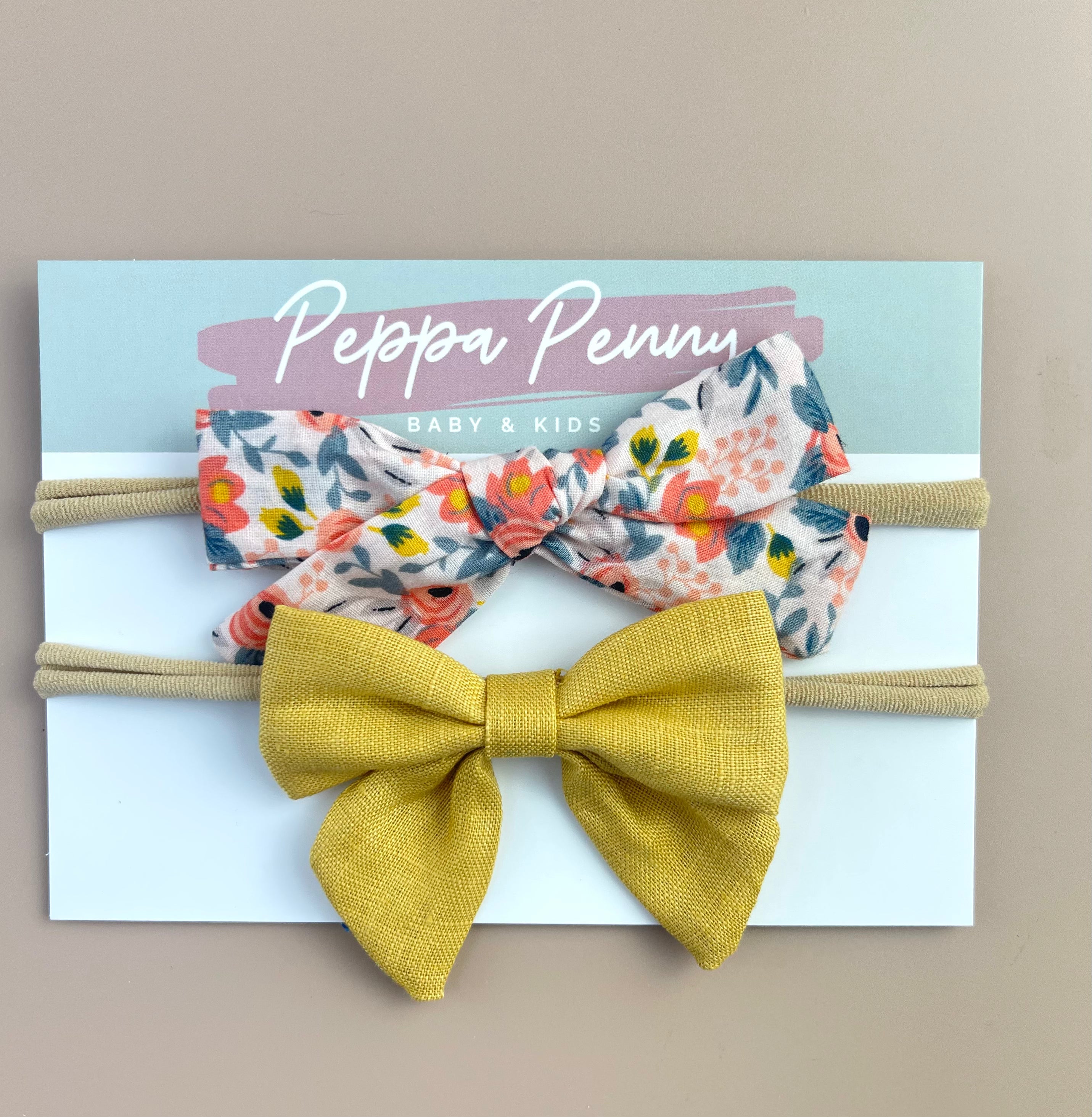 Size : Large Bow approx 5cm across , Small bow approx 3cm across, nylon headband stretches to fit from newborn to adults