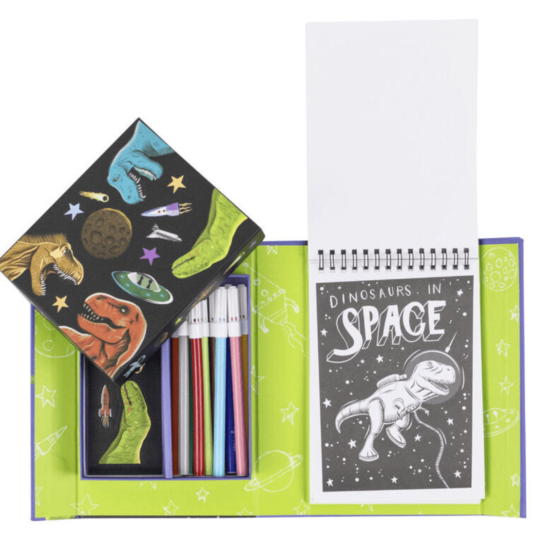 ● Classic Tiger Tribe colouring set featuring fun dinosaurs in space illustrations