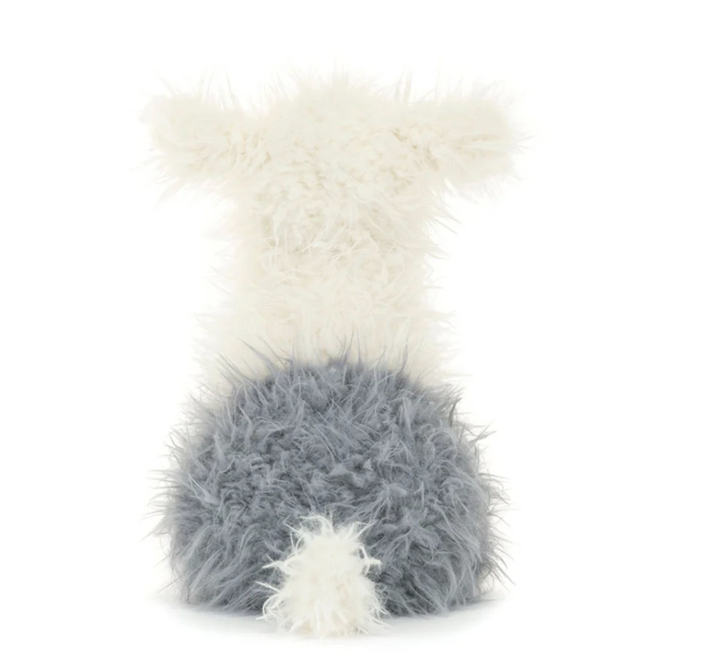 Ewert Sheepdog is here to play, round up joy, and share cuddles! In long, textured cream and grey fur with bright eyes and long tail, Ewert has stitched paw detail and a big, boopable black suedette nose. The perfect gift for dog lovers of all ages!