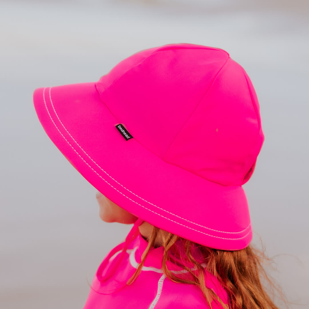 The Bedhead Ponytail Swim Bucket Hat is a UPF50+ kids sun hat with our unique 'anti-flop' brim that won't flop in front of children’s eyes!