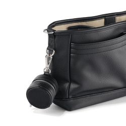Crafted from premium black dimple vegan leather, this stylish and functional accessories features a convenient clip, allowing you to easily attach it to your bag.
