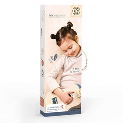 Music ignites all areas of child development, hence, this sturdy nylon six string toy guitar is a must have for your little one! The guitar is a calm blue and wooden colour with surface coating designed to prevent finger injuries. With it being easy to carry around, your child will enjoy the sound and actively strengthen and develop their musical talents anywhere at anytime. This toy is crafted from sustainably sourced wood from FSC® certified forests and coated with non toxic paint.