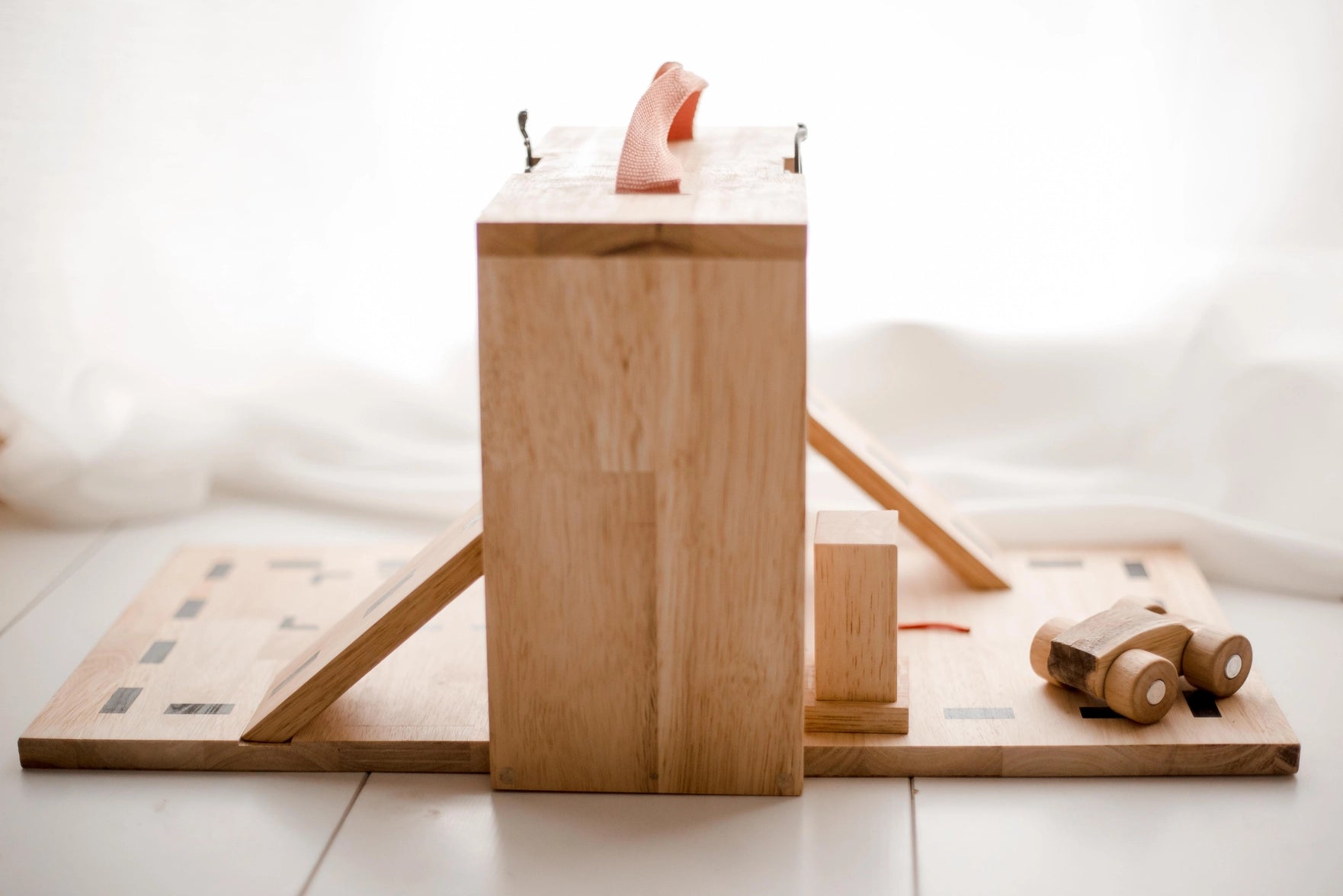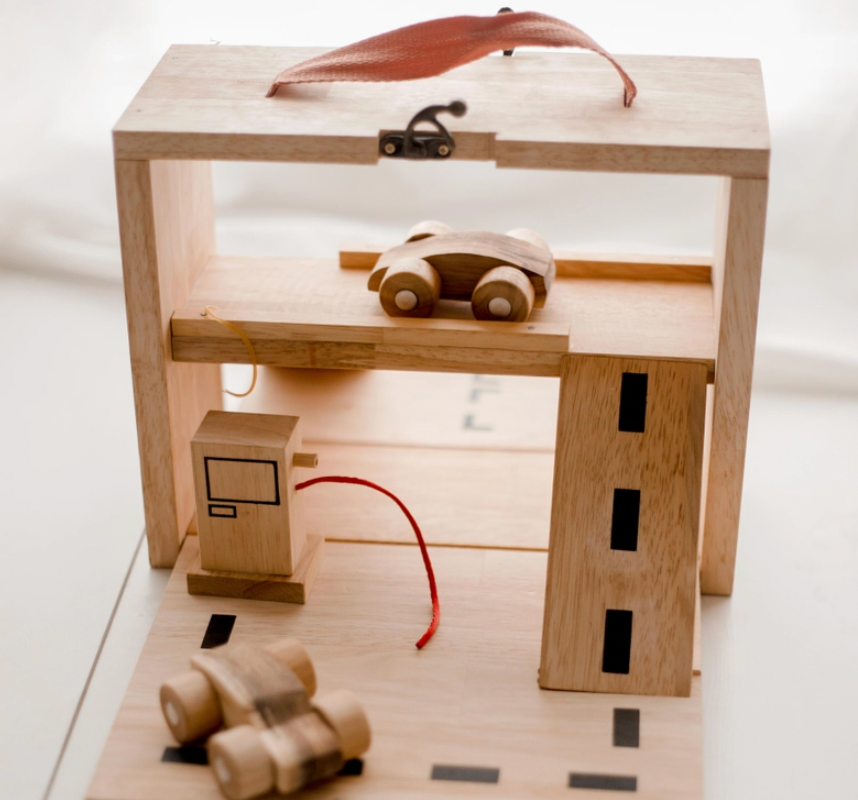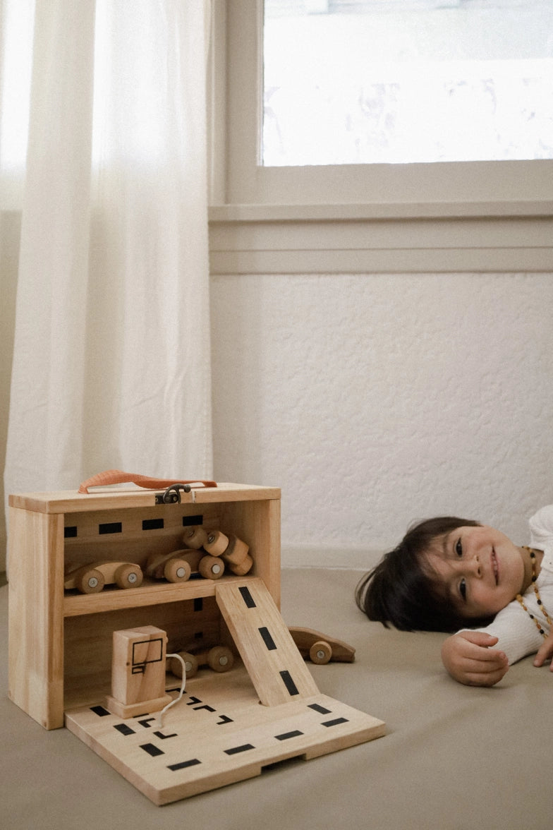 This is a station model with 4 cars, a petrol station, and traffic signs. All in a convenient storage box! A great playset for both boys and girls! Made of plantation timber using non-toxic materials, ethically made under a fair trade scheme by Qtoys.