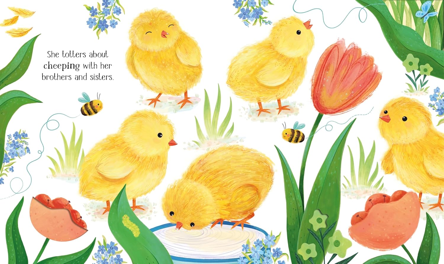 A nature board book for little children with peep holes, showing the incredible life cycle of a chick.