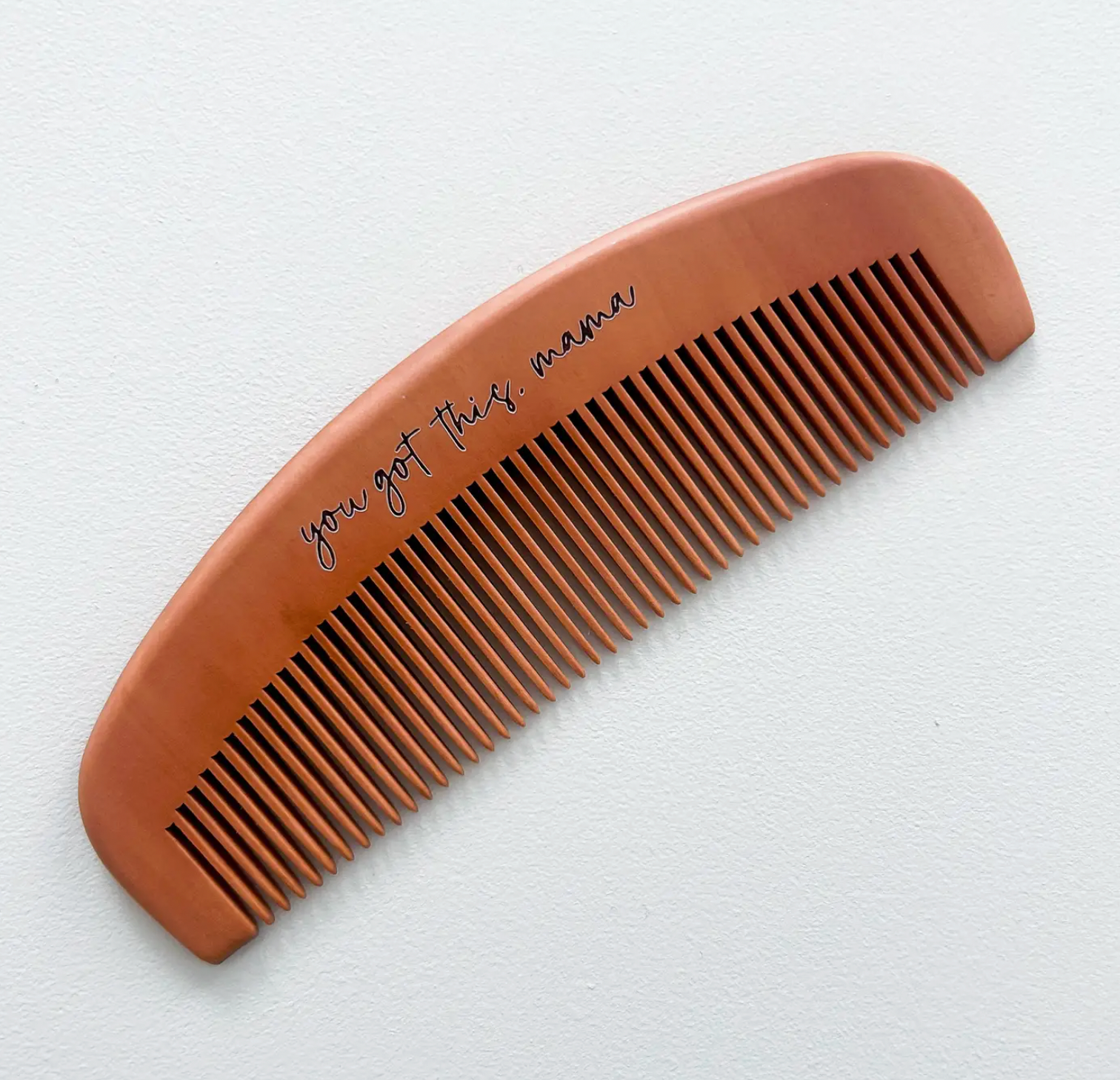 As a special touch, each comb is engraved with an encouraging reminder: “You got this, Mama.” This phrase is there to inspire strength and confidence, reminding you of your incredible ability to bring life into the world.