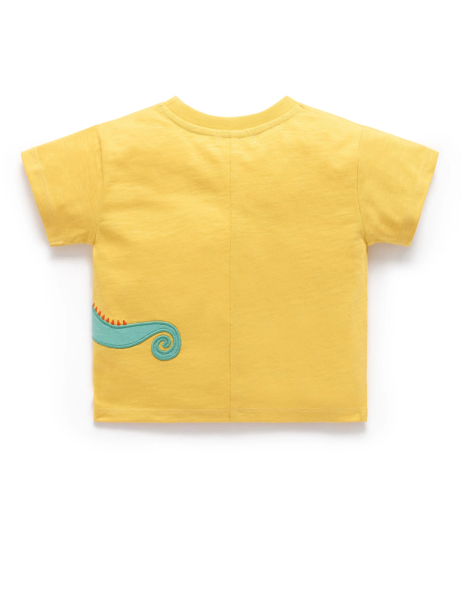 Our Chameleon Relaxed Tee is a fun addition to their summer wardrobe. Designed in a bold yellow hue, featuring a hungry chameleon applique wrapping around the front and back. Made from our 100% Organic Cotton jersey with a subtle slub, for a soft and gentle touch against their skin. This tee looks great paired with our Pull on Striped Shorts and Reversible Bucket Hat.