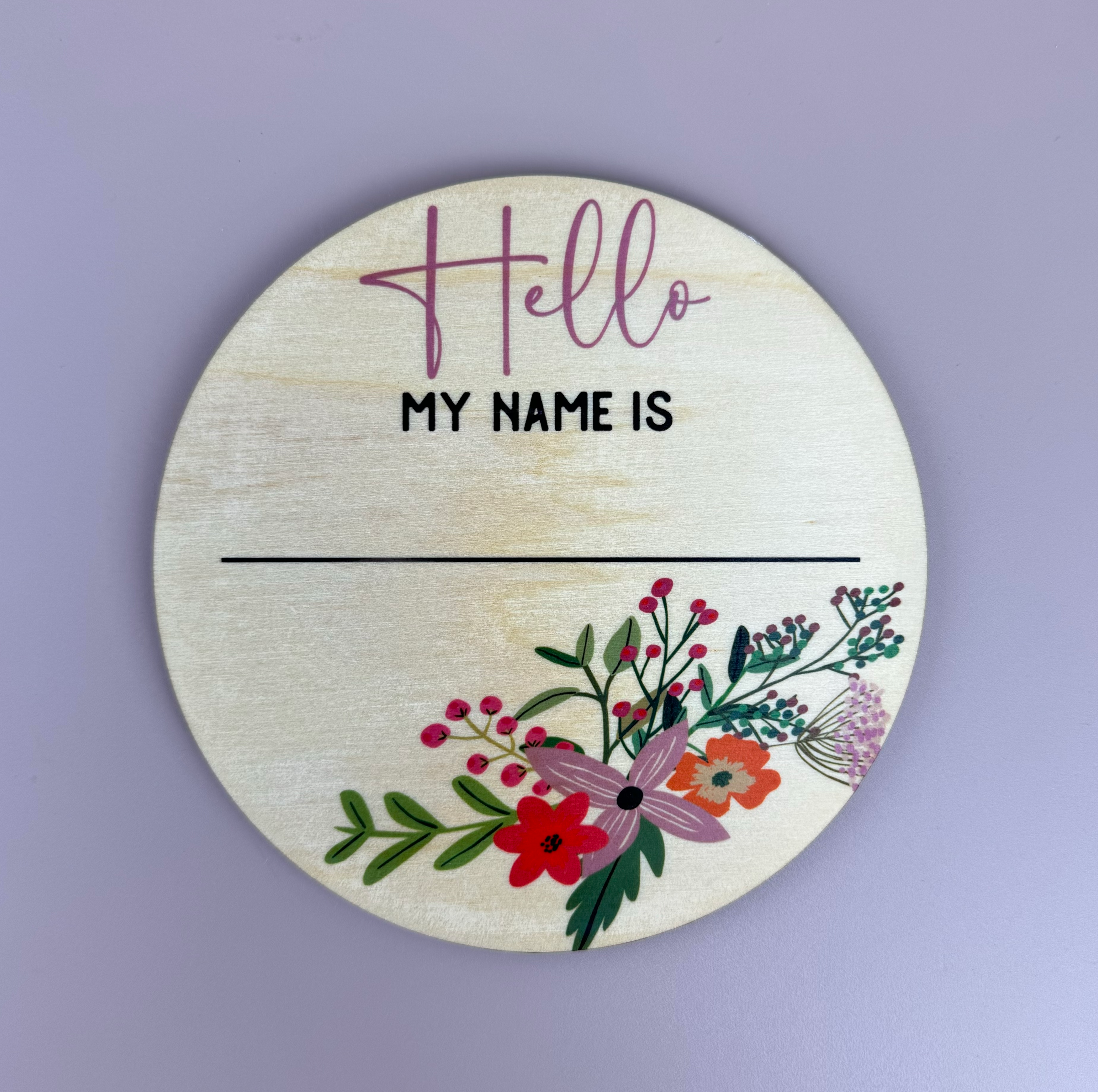 Hello my name is - Floral - Announcement Plaque - Luma Light