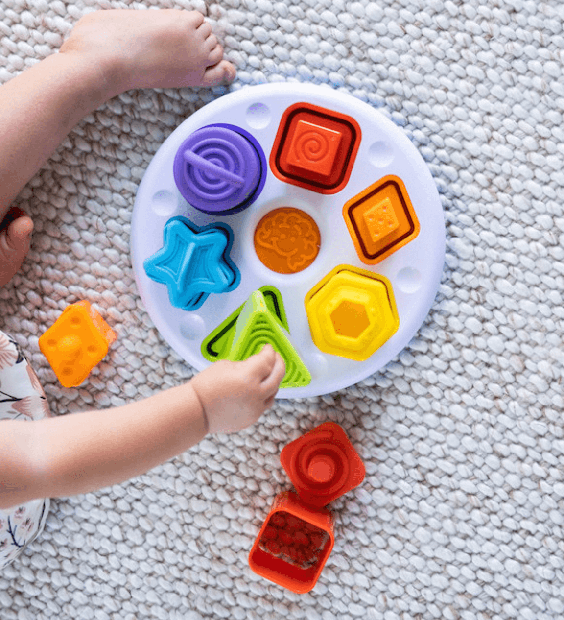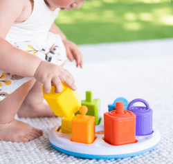 • Encourages fine motor skills, sensory learning, spatial reasoning, shape-matching, exploration