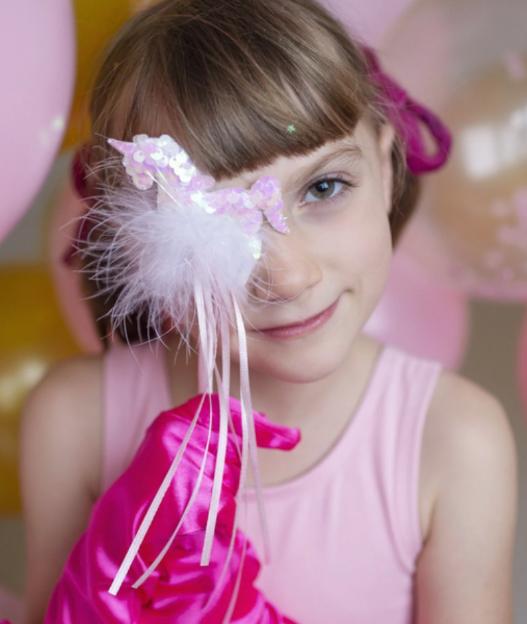 Add a touch of magic to an outfit or a little one's pretend play. The wand is covered in sequins and accented with the softest white marabou. Measuring 33cm in length, the design is decorated with elegant pink ribbons.