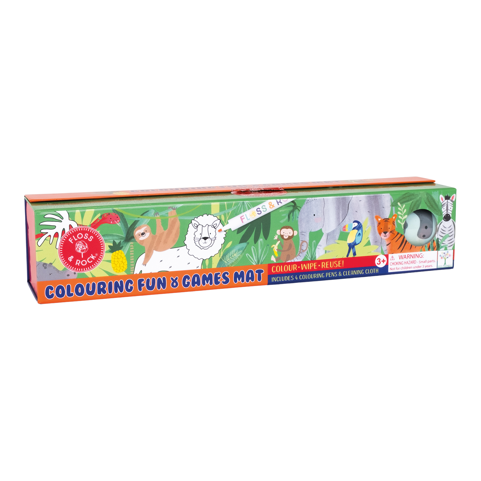 Embark on an exciting adventure with the Floss & Rock Activity Mat Pack – Jungle! This captivating set features a reusable activity mat adorned with vibrant jungle scenes, four colourful pens, and a handy cleaning cloth. Perfect for children aged 3 and up, the mat invites young explorers to colour, wipe clean, and start the fun all over again. Made with eco-friendly materials, this set ensures a mess-free and sustainable creative experience. Whether at home or on the go, the jungle-themed activity mat provides endless entertainment and stimulates imaginative play.