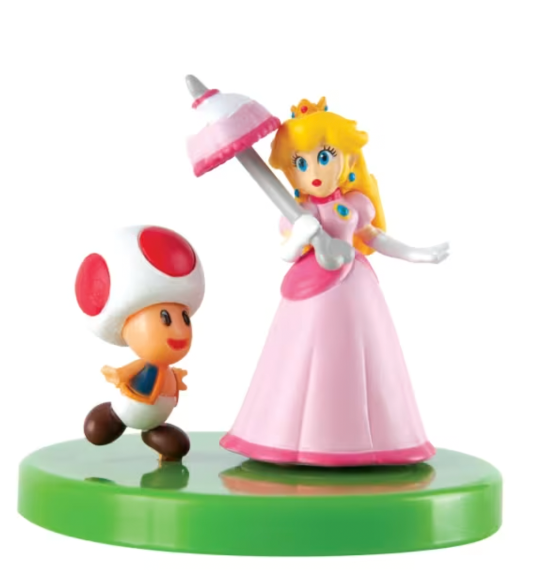 Each capsule includes one of four randomly assorted mystery buildable mini-figures of a beloved character from the Super Mario series, from Mario himself to Bowser Jr. in his Koopa Clown Car, Wiggler and Peach with Toad.