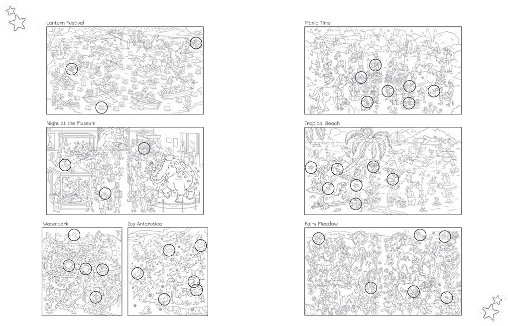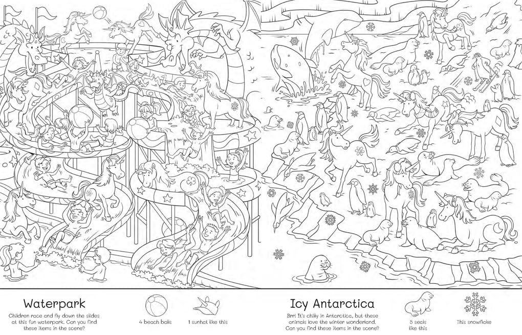 The unicorns venture to exotic locations, explore magical lands and seas, and even travel through time. With new things to find and decorate on every page, young readers can use their creative skills to help the unicorns uncover a world of secrets and treasures. With over 200 exciting things to find, this fantastic colouring book is sure to keep