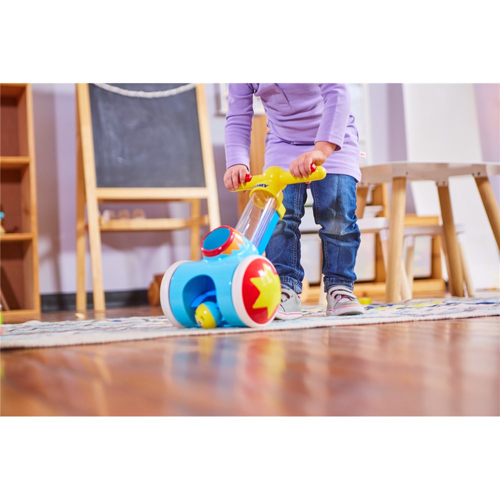 The Cannon Ball Pic & Pop is a real blast for toddlers! Little ones will love popping the balls across the floor by pressing the buttons on the handles. They can chase the balls and roll over them to pick them up, ready for the fun to start again. Pic & Pop comes with 4 colorful balls, and is great for both indoor or outdoor play. This toddlers' favorite toy is suitable for ages 18 months and up and is fully child-powered - No batteries required!