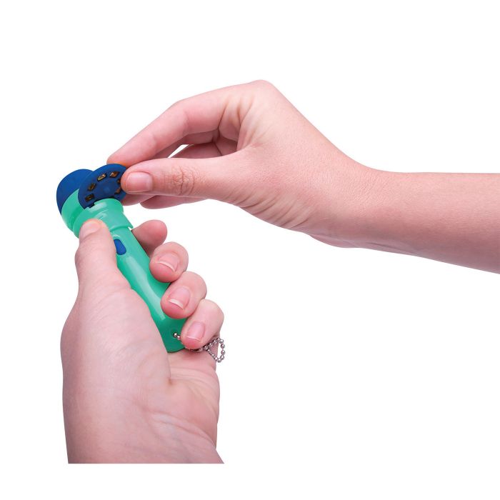 Shine the Torch Projector on your wall or ceiling and project the selected image up to 90cm wide. Includes keychain, so you can take it anywhere.