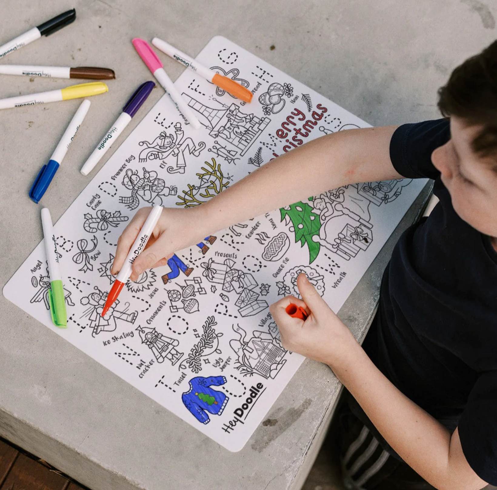 *Pack includes 1 HeyDoodle Mat, 9 HeyDoodle Markers and a travel pouch.