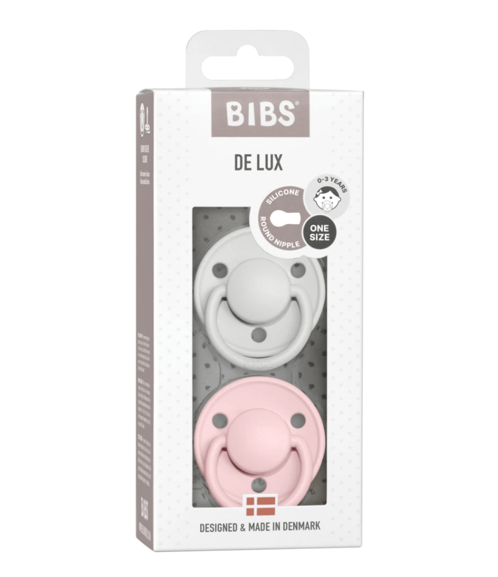 BIBS De Lux is a new and exclusive design take of the iconic BIBS Colour pacifier. It comes with an elegant hidden gathering in an enhanced matte finish for a Premium look. The cherry shaped nipple and matte lightweight shield is designed to imitate the shape of a mother’s breast.