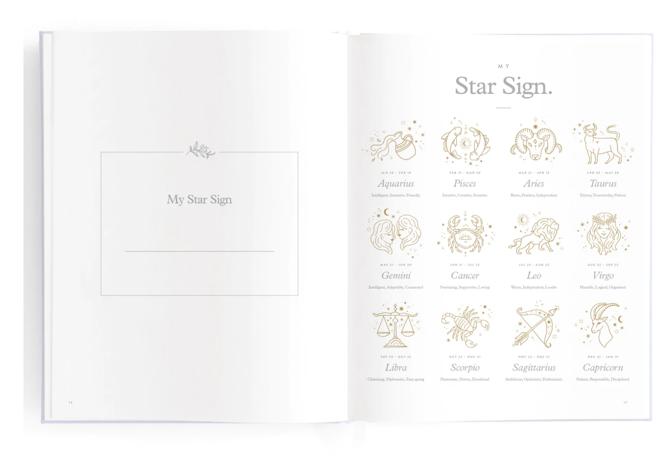 Introducing our NEW 2nd Edition - now with gold gilded edges and added pages including Star Signs, Birth Flowers, Birth Stones, Baby Teeth Chart!