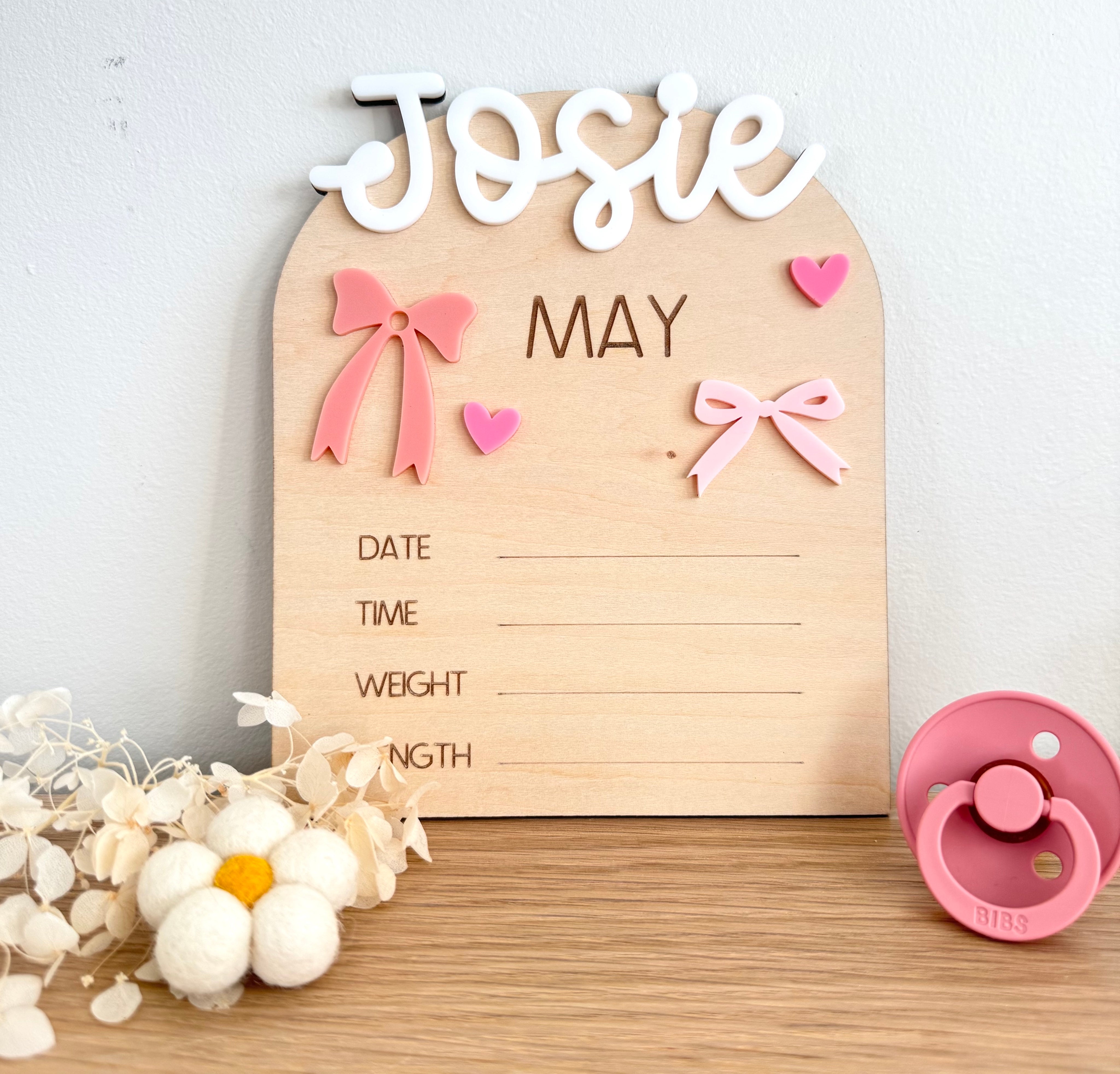 Custom Birth Announcement Plaque - Bows - Luma Light