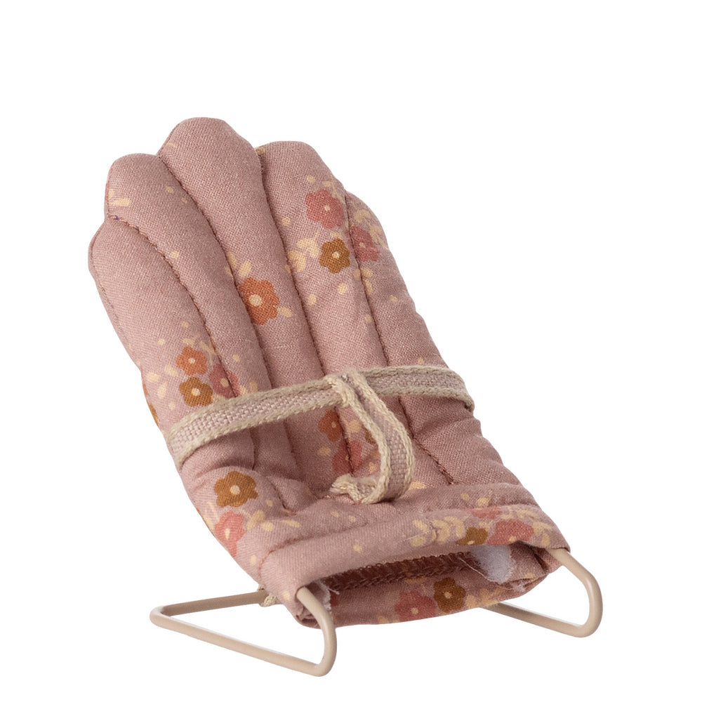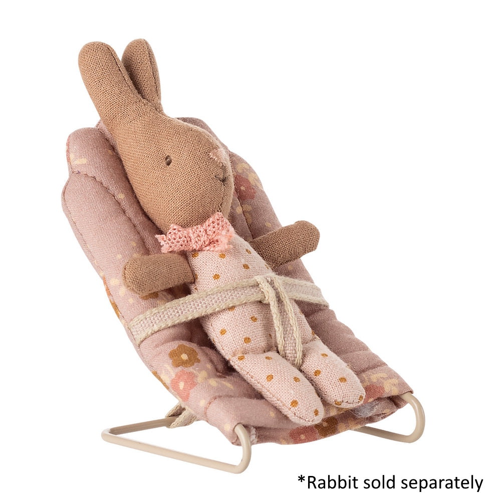 This pretty pink floral print seat features a padded, scallop-edged cushion and a fabric harness to keep baby mice or My-sized bunnies & rabbits snug and secure.