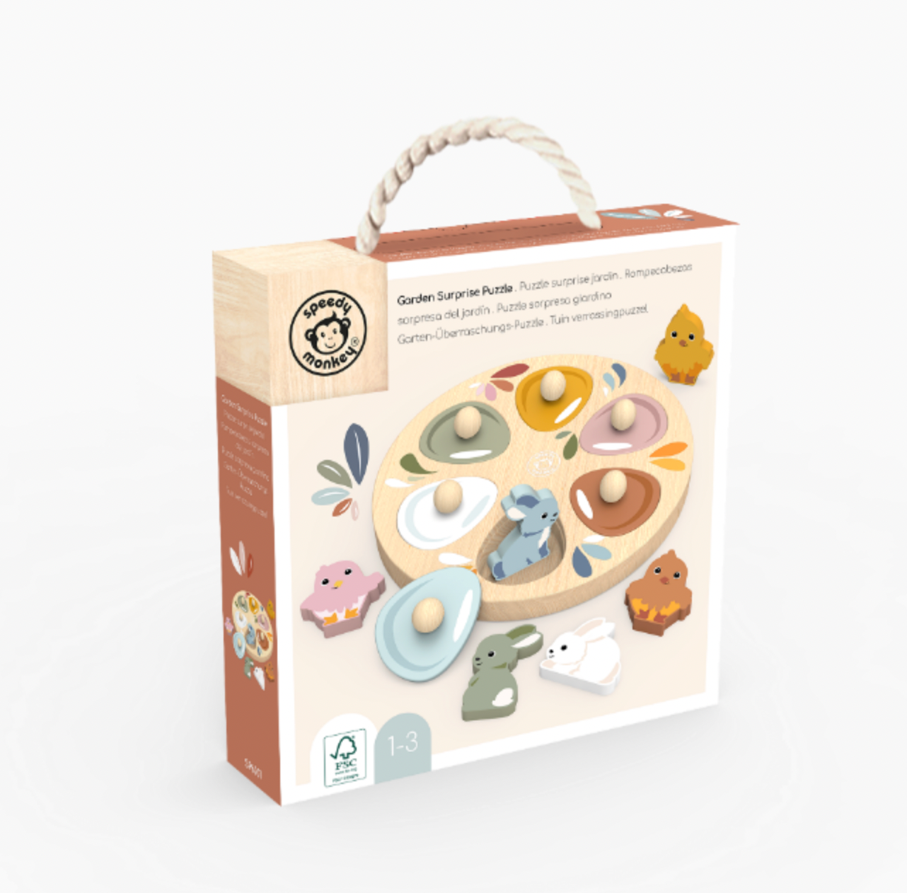 Kids will delight as they find the hidden easter surprise beneath each egg. Each colour coded egg and chicken/bunny pair is beautifully illustrated. This is designed as an entry-level puzzle for bubba's with easy to grip rounded smooth grip handles on each egg piece. Encourage toddlers to develop colour recognition, fine motor skills and perseverance. This toy is crafted from sustainably sourced wood from FSC® certified forests and coated with non-toxic paint.