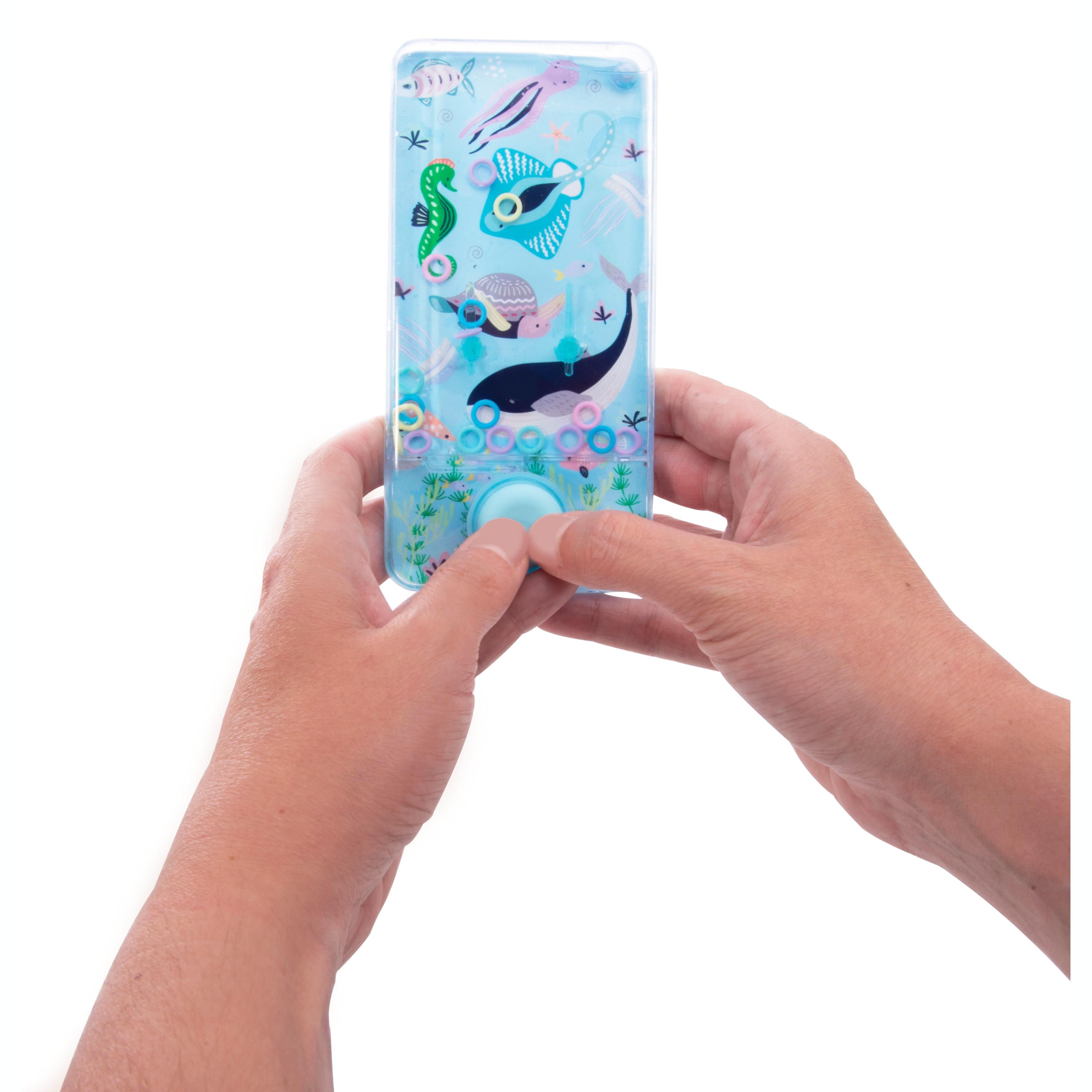 No batteries required. Press the button to create a flow of air, which propels the rings up into the water.