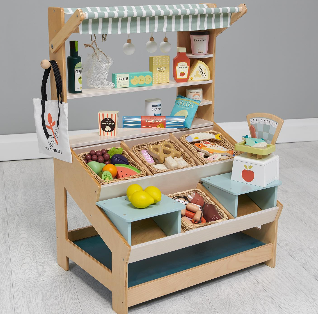 A wonderfully social and open-ended role play item that is sure to be the perfect piece in a playroom. Don't forget to fill the market with wooden play produce from the Tender Leaf Toys range.